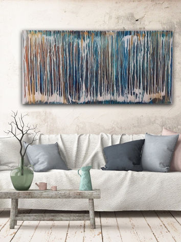 Introducing "Eruption," a stunning 24" x 48" abstract painting that captures the raw energy of nature's most powerful displays.
